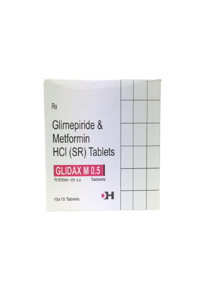 | Mechanism of action | Glidax M 0.5 Tablet is a combination of two antidiabetic medicines: Glimepiride and Metformin. Glimepiride is a sulfonylurea which works by increasing the amount of insulin released by the pancreas in order to lower the blood glucose. Metformin is a biguanide which works by lowering glucose production in the liver, delaying glucose absorption from intestines and increasing the body's sensitivity to insulin. |